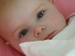 Rebekah has her 2 middle bottom teeth now. And she is rolling over within the last couple of days.