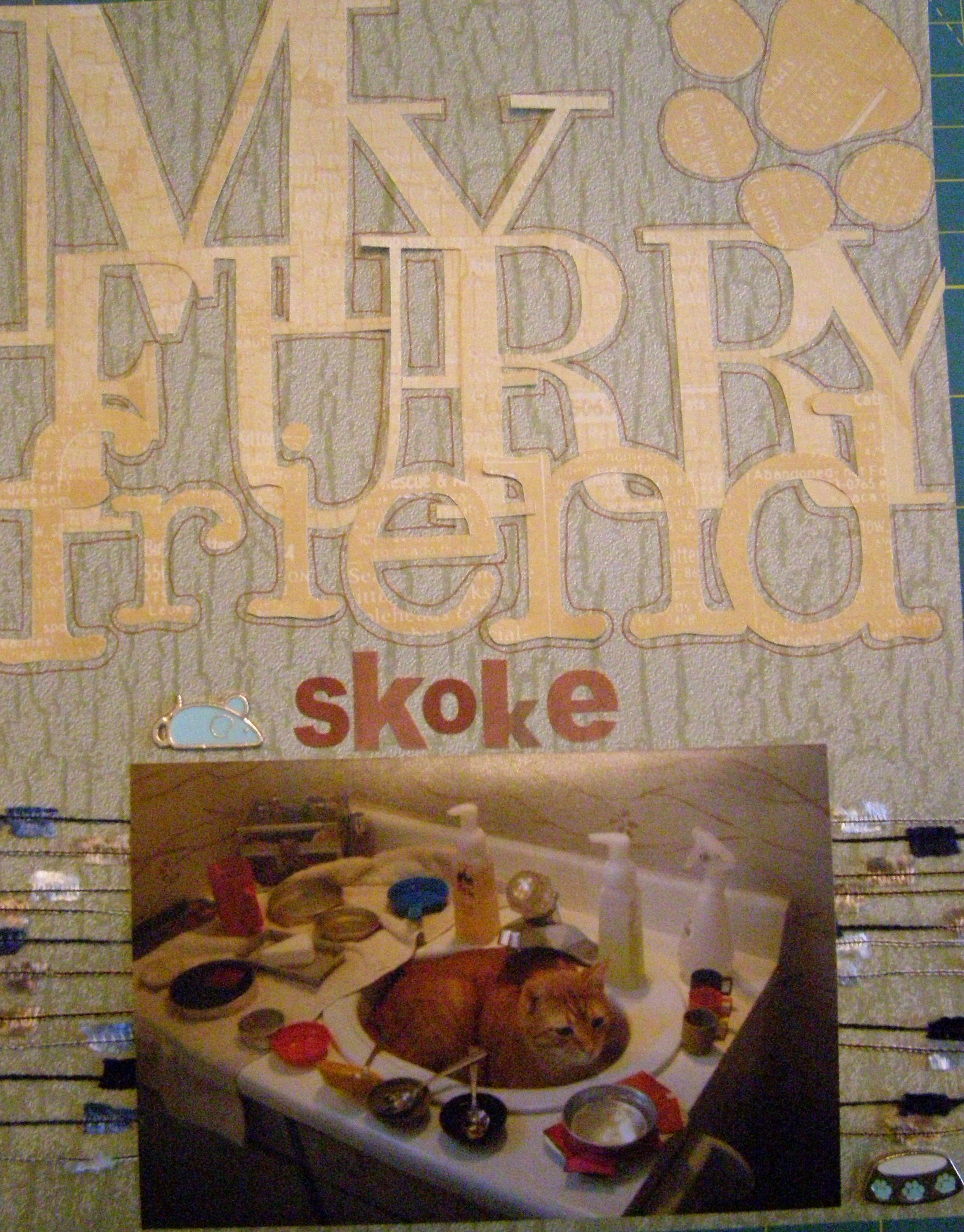 This pic is my cat Skoke, surrounded by some sort of concoction my son Timothy made. Yum!