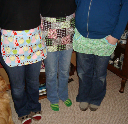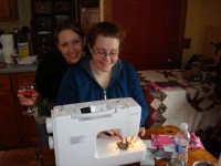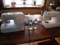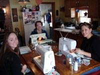 Sewing day with Abby and our friend Chrstine. We made projects out of a book called “one yard wonders.” It was a bit confusing in some places but we managed. We each made an apron. Abby and Christine made pretty bags for their cars. I made an art smock for Rebekah and a pouch for my small photo album. I love that Abby and Christine both have new white fancy sewing machines and mine is from the 70s or so. Mine ran just as well as theirs even though mine weighs twice as much as theirs put together.