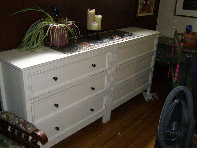 May 6, 2010April 17, 2015 tidbitsandscraps dressers for living room I decided that our living room storage solutions needed to be unified so here are the 2 dressers I put on the far wall. They were free and I already had the paint. Just had some loose screws. Share this: Click to email a link to a friend (Opens in new window) Email TweetLike Loading... Related