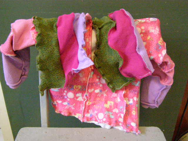 This is hard to see but my model wouldn’t give me a hand because it is too small for her. It’s a 2T pull-over fleece.