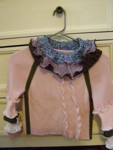 Let me start by saying these are all inspired by the great Katwise. She makes the most amazing, AMAZING, upcycled sweaters for adults. I thought: Why not start a little smaller like girl sweaters and they are great fun to make. Here are my latest few.