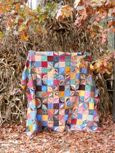Here is another quilt I started years ago. I found the pattern in a magazine (probably at Grandma’s), cut it out, and saved it. Actually, I only have the pattern part. I don’t even have the page with the actual picture of the quilt. I knew it had been beautiful bright fall colors.