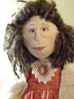 Things really started to take shape after I left my teaching job. This was a time for reflection and re-direction for me and I naturally returned to dolls. After a couple of months of making primitive dolls, I wanted to make dolls that looked like people I knew. I started with a book by Terese Cato. Her book was very helpful in guiding me to take the next step. Thank you, Terese! These dolls were soft sculpted with real character faces that got my imagination going. I started by making several, like 10, trying different sculpting techniques, making clothing, and up-cycling fabric as well as jewelry and bits of crochet or lace.